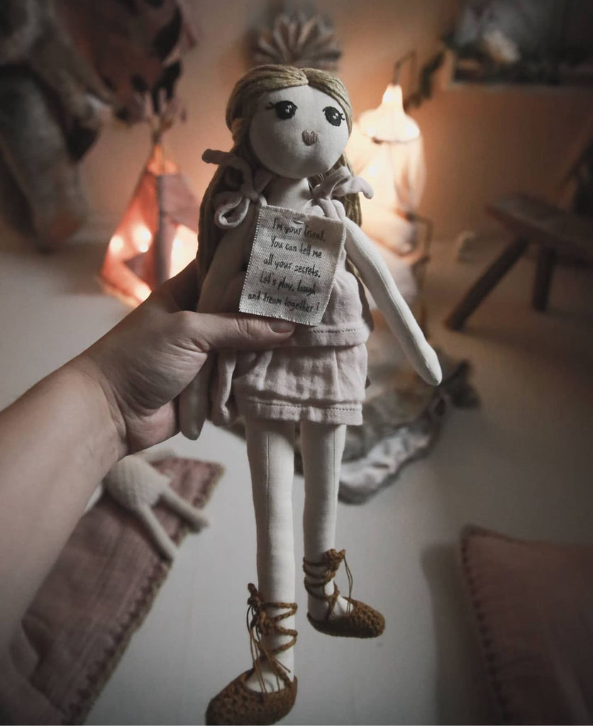 Soft materials have been assembled by hand to make lightweight and cuddly dolls with matching and removable small accessories and outfits to allow children and parents to personalise their dolls as they wish.